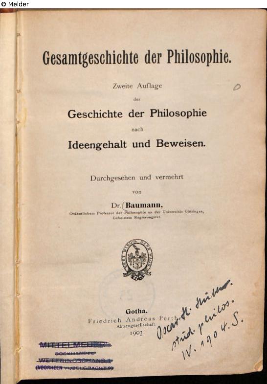 autograph „Oscar H. Hubler[?] stud. Philos. W. 1904. S.”, flyleaf rectoaund title page recto