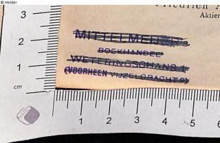 Stamp: „Mittelmeijer’s Boekhandel Weteringschans 1 (voorheen Vijzelgracht 9)“, crossed out, title paget recto