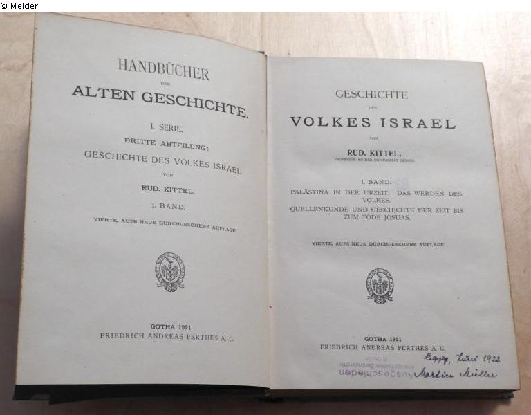 Band 1: Palästina in der Urzeit. Das Werden des Volkes. Quellenkunde und Geschichte der Zeit bis zum Tode Josuas. Band 2: Das Volk in Kanaan. Geschichte der Zeit bis zum babylonischen Exil. 4., aufs neue durchgearbeitete Auflage