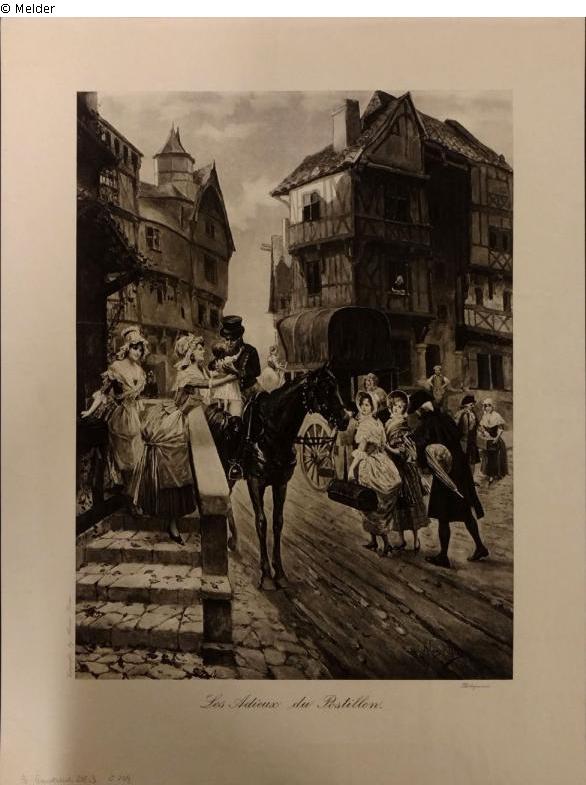 Found-Object Report | Object report Les Adieux du Postillon. Lost Art-ID593042 Previous Next Artist / Creator Alonzo Perez TitleLes Adieux du Postillon.Object typePrintGroup of reported objectsGraphicMaterial / TechniquePaper / printed (collotype) Height 56.10 cm Width 42.50 cm Inventory number4.0.19879Provenance until 1938:unknownin 1938:Reichspostmuseum Department Stuttgart, President Wolpertfrom 1938:Reichspostmuseum BerlinUnclear acquisition Read more Read less Published since05.01.2021 Contact Museumsstiftung Post und Telekommunikation Museum für Kommunikation, Berlin Leipziger Straße 16 10117 Berlin Germany Phone+49 (0)30 202 94 0Fax+49 (0)30 202 94 111E-Mailmfk-berlin@mspt.deHomepagehttps://www.museumsstiftung.de Contact Dr. Veit DidczuneitPositionAbteilungsleiter SammlungenPhone+49 (0)30 71302 710E-Mailv.didczuneit@mspt.de