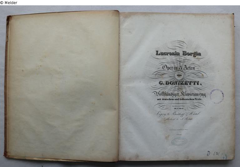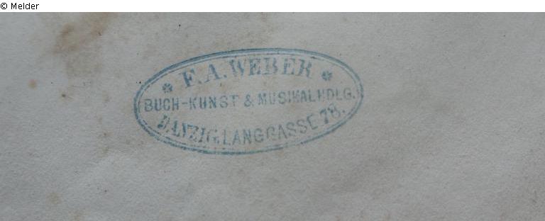 oval stamp: "F. A. Weber Buch-Kunst & [] Hdlg Danzig Langgasse 78"; stamp: "Musikwissenschaftliches Institut der Universität Köln"; handwritten inventory number: "111393";