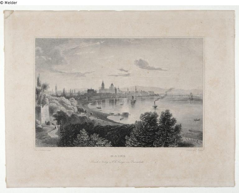 Part of a bundle of originally 50 single prints and 3 portfolios, all of them Moguntines (i.e. steel and copper engravings or lithographs with historical views of the city of Mainz). In February 1943, after the deportation of the owners, they were confiscated by the tax office Darmstadt-Stadt (tax office identification number for the single graphic at hand: "Da. St. A 179/23" bzw. "Da. St. A 181/23"). On 13 September 1943, by order of the Chief Finance President of Hesse, transferred to the Gemäldegalerie Mainz. Estimated price for the entire collection: RM 600.