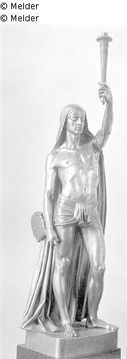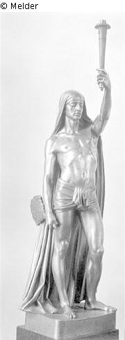 At the base: A. Toussaint 1850; man with a loincloth, in the left the torch, in the right a peacock fan. Above the head down to the feet a cloth.
