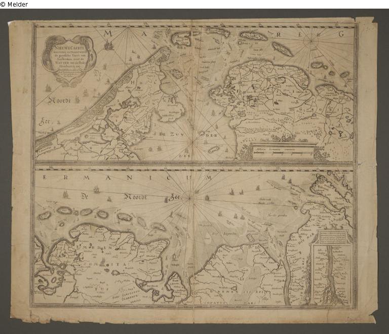 Map „Nieuwe Caerte waerinne vertoont wordt de gantsche Vaert van Amsterdam over de Watten tot de stadt Hamborch toe - Neue Karte, in der die ganze Strecke von Amsterdam über das Wattenmeer nach der Stadt Hamburg aufgezeigt wird“