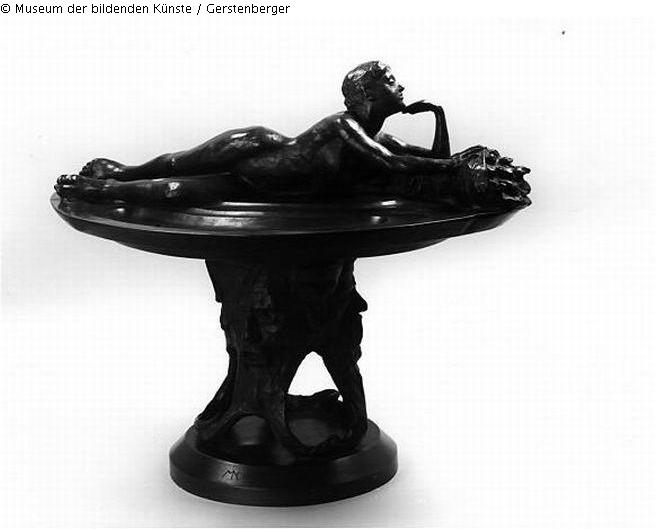 Postumer Bronzeabguß des Modells für einen zu Klingers Lebzeiten nicht ausgeführten Brunnen; bezeichnet an der Plinthe Vorderseite: "MK" (Monogramm)