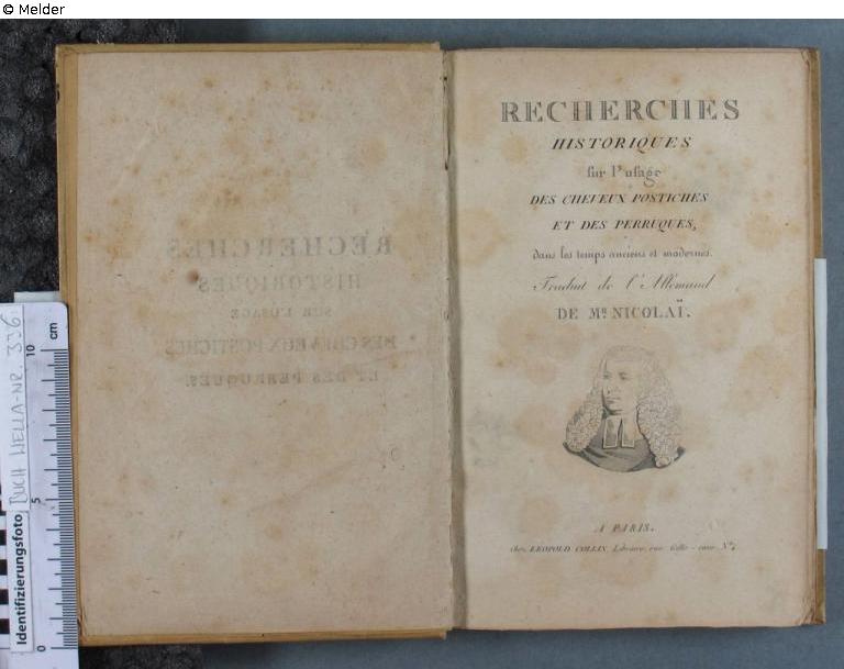 Found-Object Report | Object report Recherches historiques sur l'usage des cheveux postiches et des perruques, dans les temps anciens et modernes Lost Art-ID622775 Previous Next Author Friedrich Nicolai Publisher Leopold Collin TitleRecherches historiques sur l'usage des cheveux postiches et des perruques, dans les temps anciens et modernesPlace of releaseParis Date of publication1809 (around)Object typeLibrary objectsGroup of reported objectsLibrary objectsSignatureWe-GR 336Description lable on front pastedown: Thioly, médecin, Grand Quai Read more Read less Provenance ? - ?: Thioly, médecin, Grand Quai; [...]; 16.12.1958 - 2013: Museum Wella Darmstadt, purchased from Unknown; 2013: donated to the HLMD Read more Read less Published since22.07.2024 Contact Hessisches Landesmuseum Darmstadt Friedensplatz 1 64283 Darmstadt Germany Phone+49 6151-3601-200Fax+49 06151-1657199E-Mailinfo@hlmd.deHomepagehttps://www.hlmd.de/de/ Contact Dr. Martin FaassPositionDirektorPhone+49 6151-3601-001