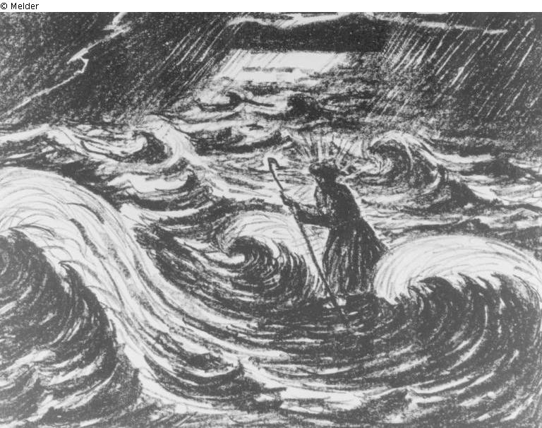 Saint Francis strides across the waves