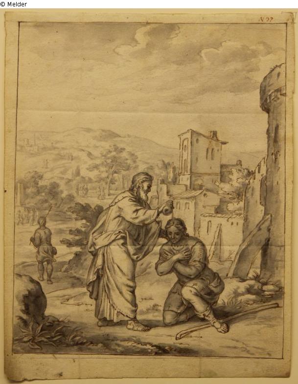 Preliminary drawing for the so-called Stern'sche Bilderbibel, Lüneburg 1672. Recto: upper right in red: "N 37". Verso: lower right in pencil: "Dr. G.B."
