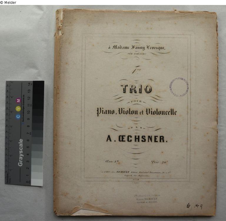 Autograph: "Oechsner []"; circular stamp: "Musikwissenschaftliches Institut der Universität Köln"; handwritten inventory number: "13,324";