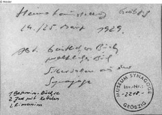 Original inventory of the synagogue in Gröbzig (Anhalt); lost since the National Socialist era.