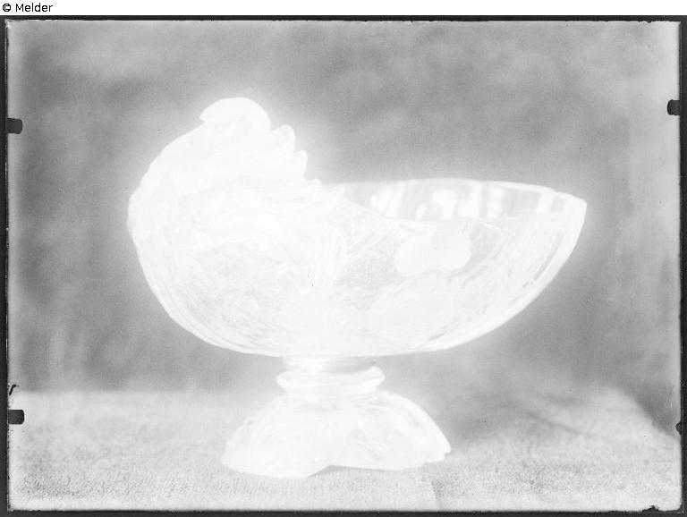 Shell-shaped, oval bowl with convexly cut decorations; the Hessian coat of arms on one side, the initials "LC" (landgrave Carl) on the other; shell-shaped foot with silver gilt mounting; signed: "Cassel fecit / 1688".