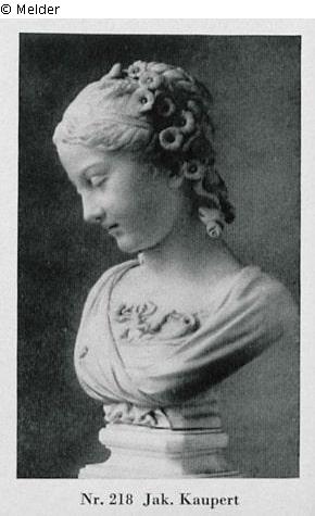 Hahn 1940: made of Carrara marble. With wooden column; Hahn 1948: "1 Marmorbüste, weiß, junges Mädchen mit Blumen im Haar"