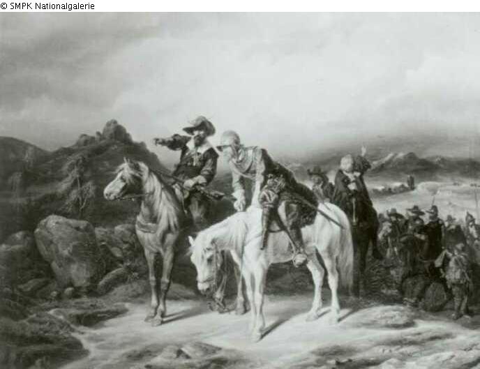 Panel painting: Picture: scouting, spying (in the military) & troops on the way (to the front) & mountain, high hill