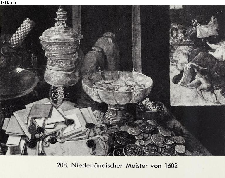 In summer 1925, this painting was shown at the exhibition "Ausstellung von Meisterwerken Alter Malerei aus Privatbesitz" im Städelschen Kunstinstitut, Frankfurt/Main, with title "Allegory of avarice" (Catalogue Pos. 53: Other measurements 38 x 56,6 cm)