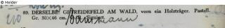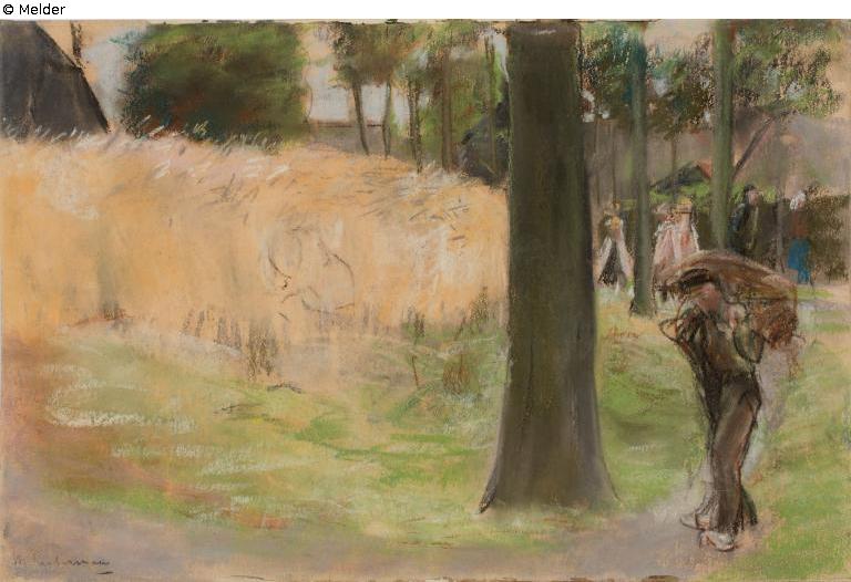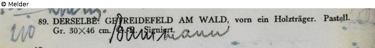Collection Eduard Fuchs until 1933; 25.10.1933 confiscation by the Gestapo; forced sale (payment of Reichsfluchtsteuer) 1937 by his daughter Gertraud Fuchs: Auction Rudolph Lepke, Catalogue 2114, 16. and 17.06.1937, No. 89 ("Getreidefeld am Wald, vorn ein Holzträger. Goldrahmen"); purchased by art dealer Hans Bammann, Düsseldorf (according to the annotated catalogue of the RKD Den Haag - Dutch Institute for Art History) for 250 RM (estimated price 210 RM); private collection Southern Germany; 01.06.2001 Kunsthaus Lempertz, Cologne (auctioned for DM 100,000); the pastel is to be auctioned at Villa Grisebach Berlin in May 2019 - restitution negotiations are currently taking place