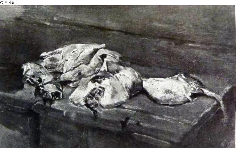 Search Request | Object report Fish still life, also "Fleischerbank" Lost Art-ID452433 Previous Next Artist / Creator Liebermann, Max Birth 1847.07.20, Berlin Death 1935.02.08, Berlin Place of activityBerlin TitleFish still life, also "Fleischerbank" Dating1877Object typePaintingGroup of reported objectsPaintingMaterial / TechniqueOil ; Panel / painted Height 17.50 cm Width 27.00 cm Description probably estate stamp Read more Read less Provenance Max Liebermann, Martha Liebermann Berlin; loss after 1937;2021 amicable settlement with the heirs Read more Read less Status amicable settlement Literature / Source M. Eberle, Werkverzeichnis Max Liebermann, Nr. 1877/7 Read more Read less Published since12.03.2012 Contact Dr. Monika TatzkowPositionWissenschaftlicher DokumentationsdienstPhone+49 (0) 30 64 128 13E-Mailtatzkow@t-online.de