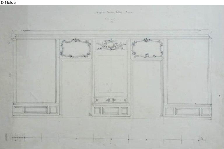 In inventory list no. 1 of 31 January 1920 as part of the settlement agreement between the Free State of Saxony and the former royal house of 1924; In the specifications for salvage on 27 December 1943, Prof. Fichtner's report to the Reich governor specified under point 6 the rRemoval of the overdoors. The removal of the four overdoors from the audience chamber with further 18 overdoor paintings and 12 overdoor frames to the relocation site at Brauna Castle on 12 June 1944 is on record; According to the records, they were lost at the relocation site.