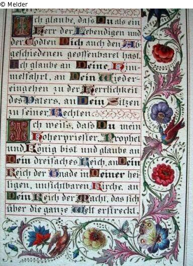Handschriftenreproduktion des Glaubensbekenntnisses der Prinzessin Luise von Preußen, abgelegt am 19. Mai 1855