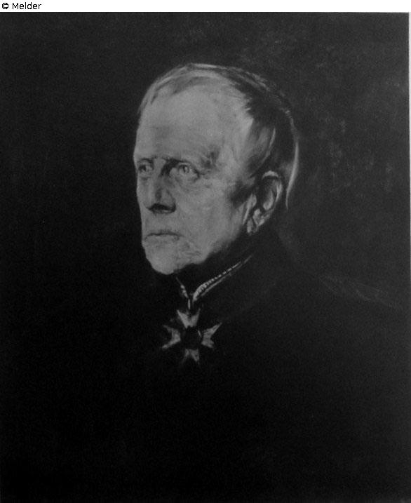 Life-size portrait without hands in half profile to the left with wig. The general marshal wears a uniform. The order 'pour le merité' and the shoulders are only indicated. [...] Signed in the upper right: F. Lenbach 1882, Creisau. [...] Acquired 1906 in Frankfurt a.M.