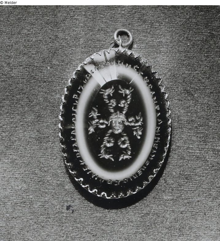 Inventar 1764, fol. 25r, Nr. 7; Inventar 1858, Bd. I, Cap. II Gemmen, Nr. 126; Aldenhoven Geräth und Schmuck, III Gemmen, Nr. 81 / Lit.: Spier, Jeffrey: Medieval Byzantine magical amulets and their tradition, in: Journal of the Warburg and Courtauld Institutes, Volume 56, 1993, S. 58, Abb. Tafel 4.
