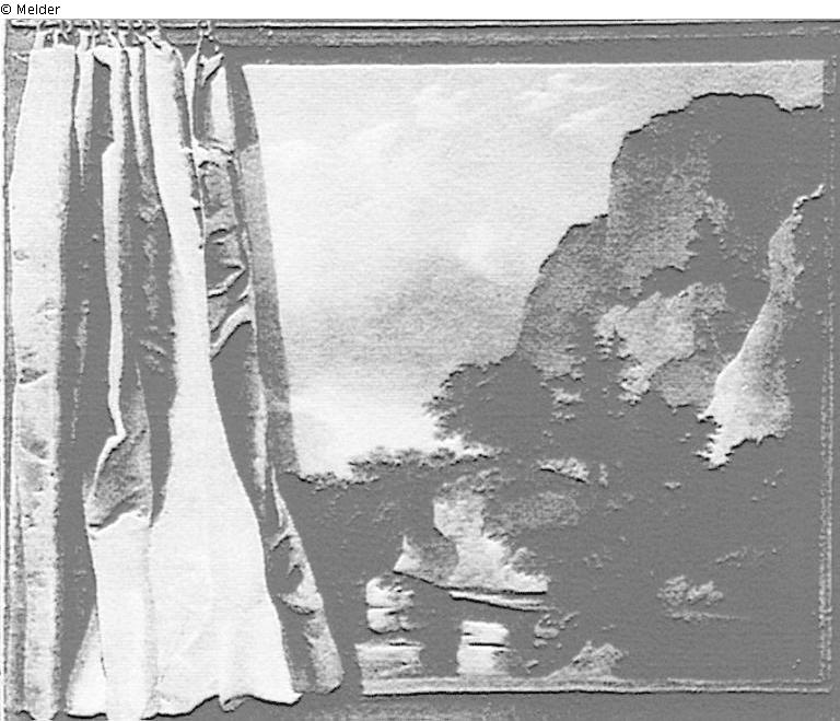 further attributions: Jan van Aken; Pieter de Molijn; other titles: through a window opening with red curtains view of a mountain valley; Mountain landscape with trompe l'oeil