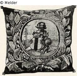 Wappen mit Zentauren, umrankt von Blattkranz. Bezeichnet: Brielle