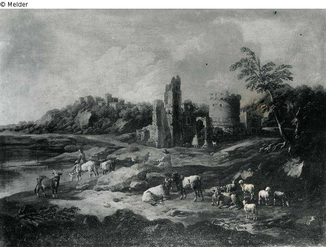 Landscape with ruins and cows
