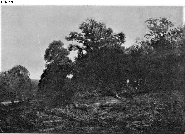 Parke-Bernet: A rutted road leading through a clearing in the foreground, a winding foot path forking at the right into a wood, the trees screening a blue sky with cumulus clouds reflecting a luminous light. (Hanak) [Marginal:] 200 [?]