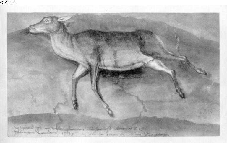 Signatur: Unten: Daß gewild ist an unßer frawen liechtmeß abent M 515/gefangen worden/1539/daß hat der bilzan schmid im Zuig gestochen.