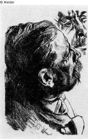 Study for the painting: The Iron Rolling Mill (1875). Berlin, National Gallery. Signature: bottom center: Ad. Menzel. Black chalk.