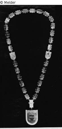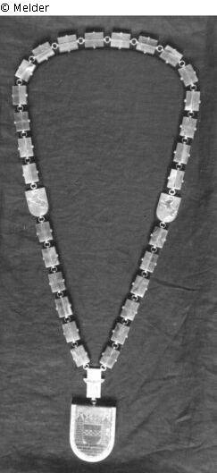 History of loss: The mayor's chain was confiscated on 22 April 1945 by Major Baker of the 9th US Army, XVI (16), Corps (Major General John B. Anderson) 75th Division (289, 290, 291 Infantry Regiment), Fifth Section of the General Staff Official Allied Expeditionary Force, Military Government (letter from Rolf G. Wilmink dated 9 May 1997).