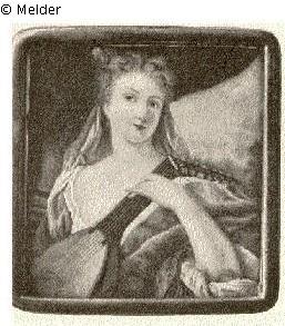 Search Request | Object report Miniaturbildnis einer Dame mit Laute Lost Art-ID404384 Previous Next Artist / Creator Erbstatthalterin Wilhelmine von Oranien TitleMiniaturbildnis einer Dame mit LauteObject typePaintingGroup of reported objectsca. 350 Miniaturen (Painting)Material / TechniqueIvory / watercoloured Height 5.70 cm Width 5.40 cm Inventory numberGK I 41572; HM II 460Collection MiniaturensammlungProvenance Hohenzollernmuseum, Monbijou Palace, Berlin; lost in 1945. Read more Read less Published since2008 Contact Michaela BlankartPositionGeneralverwaltungPhone+49 (0) 30 803 1138E-Mailberlin@preussen.de Contact Stefan SchimmelPositionKunstsammlungenPhone+49 (0) 30 803 1138E-Mailschimmel@preussen.de