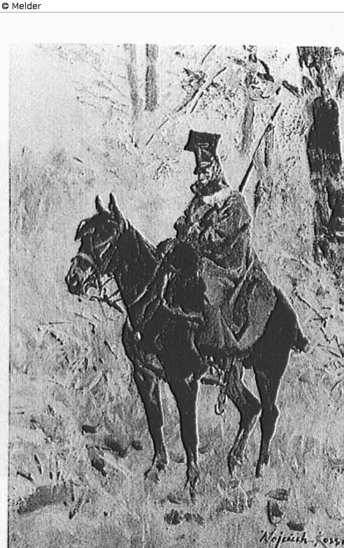 Search Request | Object report Polish Ulan to items in a winter landscape Lost Art-ID530018 Previous Next Artist / Creator Kossak, Wojciech Birth 01.01.1857, oder 31.12.1856, Paris (Frankreich) Death 29.07.1942, Krakau (Polen) Place of activityParis, Krakau, Washington TitlePolish Ulan to items in a winter landscapeObject typePaintingGroup of reported objectsPaintingMaterial / TechniqueOil ; Cardboard / painted Height 48.00 cm Width 33.00 cm Description signed Read more Read less Provenance Petschek, Aussig; Union, Berlin 28.-29.5.41, No. 104, purchaser: A., Berlin; S., Berlin; Lindenau Museum Altenburg/Thr.2019 Restitution to the heirs(Information on purchaser's name may be provided by the declarant if necessary) Read more Read less Status restituted Published since11.11.2015 Contact Please contact the German Lost Art Foundation.