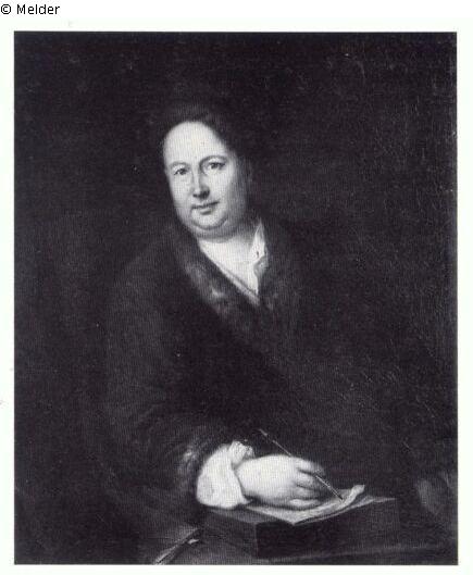 Painting with the half-figure of the court jeweller Johann Melchior Dinglinger at the drawing desk. On the drawing desk the inscription: "A. de Manyoki Nobil Hung: pinxit Berolini 1731".