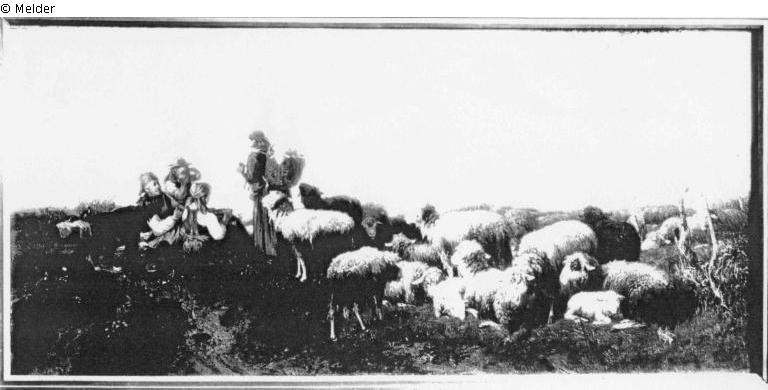 Resting flock of sheep