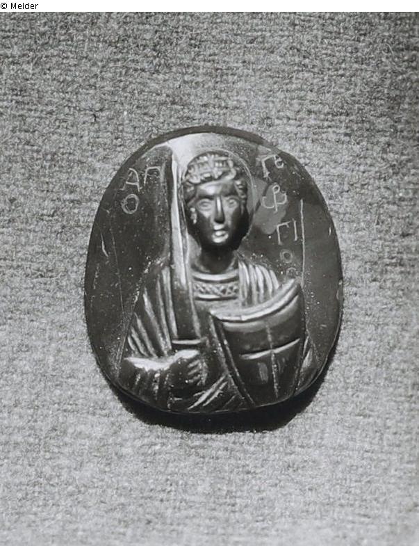 Oval heliotrope, with the bust of Saint George in high relief and the inscription: ΑΓΙΟ Γε ωρ [ligated] ΓΙ ΟϹ (replica).