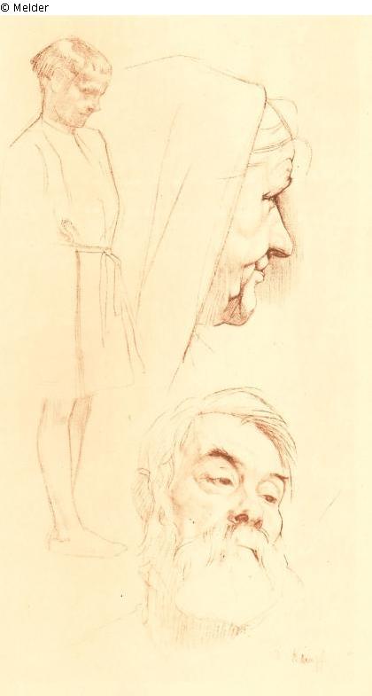 Search Request | Object report Standing boy in the apron skirt, head of a woman in the profile and head of a man from the front Lost Art-ID143731 Previous Next Artist / Creator Kampf, Arthur Birth 1864.09.28, Aachen Death 1950.02.08, Kastrop-Rauxel TitleStanding boy in the apron skirt, head of a woman in the profile and head of a man from the frontObject typeDrawingGroup of reported objectsGraphicMaterial / TechniqueRed chalk ; Paper grey-green / drawn Height 48.20 cm Width 26.00 cm Inventory numberC 1904-80Description Signatur: Rechts unten: Akampf. Graugrünes Papier. Read more Read less HoldingAbteilung C – ZeichnungenProvenance Vom Künstler, Düsseldorf, 1904. Read more Read less Literature / Source Singer, Hans W.: Zeichnungen von Arthur Kampf; (= Meister der Zeichnung; 9); Band 1 (Dreiundfünfzig Tafeln mit Lichtdrucken nach des Meisters Originalen); Leipzig; 1912, Abb. 26. Read more Read less Published since2001 Contact Staatliche Kunstsammlungen Dresden Kupferstich-Kabinett Taschenberg 2 01067 Dresden Germany Phone(0351) 4914 3210E-Mailkk@skd.museumHomepagehttps://www.skd.museum Contact DirektionPhone(0351) 4914 3210E-Mailkk@skd.museum