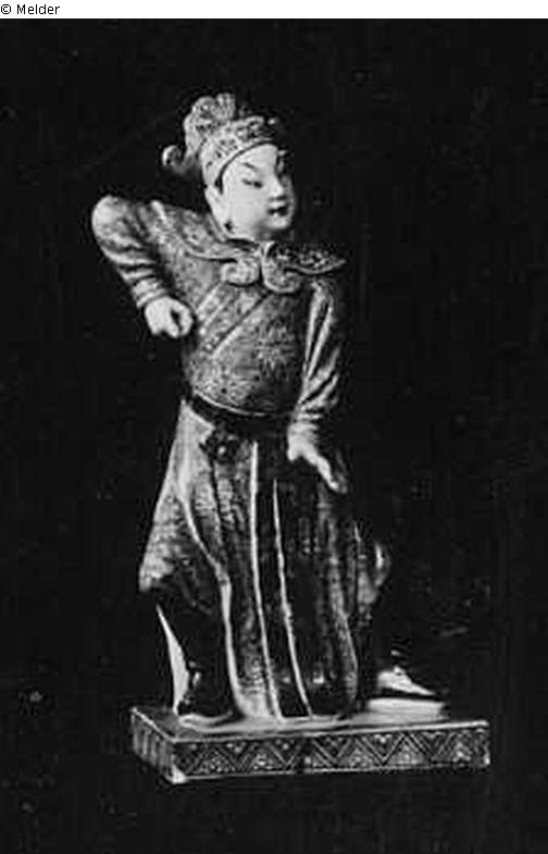 Search Request | Object report Stehender Schauspieler Lost Art-ID304664 Previous Next Artist / Creator Unknown (Chinesisch) TitleStehender SchauspielerObject typeSculptureGroup of reported objectsSculptureMaterial / TechniqueCeramics (Porcelain) / painted Height 22.10 cm Inventory number315Description Stehender Schauspieler, weißes Porzellan ganz bemalt in Grün, Blau, Schwarz und etwas Rot und Gelb, irisierend Read more Read less Provenance until 1942 Collection Max Rüdenberg, Hanover; confiscated on 1 July 1942 and auctioned by Urban in Hanover in January 1943 Read more Read less Published since2004 Contact Please contact the German Lost Art Foundation.