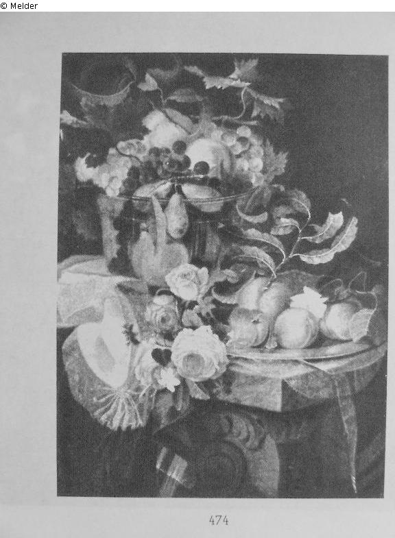 Search Request | Object report Still life with fruits and flowers Lost Art-ID429212 Previous Next Artist / Creator Heem, Cornelis de Birth (vor) 1631.04.08, Leiden Death (vor) 1695.05.17, Antwerpen TitleStill life with fruits and flowersObject typePaintingGroup of reported objectsPaintingMaterial / TechniqueOil ; Panel / painted Height 64.00 cm Width 48.00 cm Description Aufbau von Äpfeln, Trauben und Birne mit Rosen. Über einer konsolengetragenen Tischecke. Tischtuch mit Spitzen. Schwarzer Rahmen. Abb. Tafel LVII Read more Read less Provenance Collection Hede und Josef Wiener, Czech Republic; confiscated by the Gestapo in Prague; auctioned at Weinmüller, Munich 13./14.11.1941, Lot 474 Read more Read less Published since24.01.2011 Contact von Trott zu Solz LammekPositionRechtsanwälte NotarPhone+49 (0) 30 59 00 33 0-0E-Mailkanzlei@vontrott-lammek.de