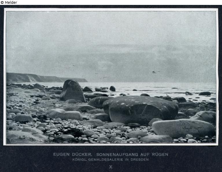 Eugène Dücker (1841-1916): Sunrise on the beach of Rügen, 1887. Historical photograph [from: E. W. Bredt, Deutsche Lande. German painters. Leipzig 1909, plate X. (photographer R. Tamme)], scan: Staatliche Kunstsammlungen Dresden (SKD)