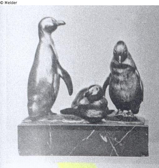 Drei Pinguine. Bronze. Gold tauschiert. Bez. A. Gaul. H. 17cm, Br. 20,5cm