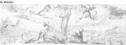 drawn (pen-and-ink drawing) ; washed
