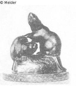 Search Request | Object report Two beavers on tree trunk Lost Art-ID599875 Previous Next Artist / Creator Gaul, August Birth 1869.10.22, Großauheim Death 1921.10.18, Berlin TitleTwo beavers on tree trunkObject typeSculptureGroup of reported objectsSculptureMaterial / TechniqueMetal (Bronze) ; Marble Height 24.00 cm Description cast chiselled by the artist, the incisors touched with gold, round marble plinth; inscribed A. Gaul Read more Read less Provenance Collection Max Silberberg, Breslau; 07.01.1936 Auction Paul Graupe, Berlin, lot 42 (sold for RM 900); whereabouts unknown Read more Read less Published since20.05.2022 Contact Dr. Monika TatzkowPositionWissenschaftlicher DokumentationsdienstPhone+49 (0) 30 64 128 13E-Mailtatzkow@t-online.de