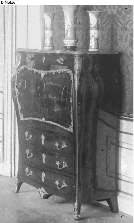 In the inventory list no. 1 of 31.01.1920 of the Dresden Palace, the writing cabinets in the “chamberlain room at the Dante room” are listed; On the salvage list of 1942, a total of 5 desks are mentioned; In August 1943, the most valuable furniture and clocks were transported to a relocation site (Rammenau or Schieritz). A loss in connection with the events of the Second World War cannot be ruled out.