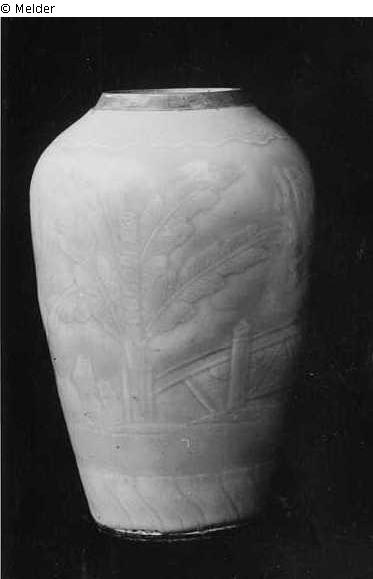 Search Request | Object report Vase with round shoulder Lost Art-ID307568 Previous Next Artist / Creator Unknown (Chinesisch) TitleVase with round shoulder Dating1601/1700 (?)Object typeVesselGroup of reported objectsCrafts and other folk arts Height 32.00 cm Inventory number304Description hohe Vase mit runder Schulter, außen mit seladonfarbener Glasur, innen weiß glasiert Read more Read less Provenance until 1942 collection Max Rüdenberg, Hanover, seized July 1, 1942, auctioned 1943 at Urban, Hanover Read more Read less Published since2005 Contact Please contact the German Lost Art Foundation.