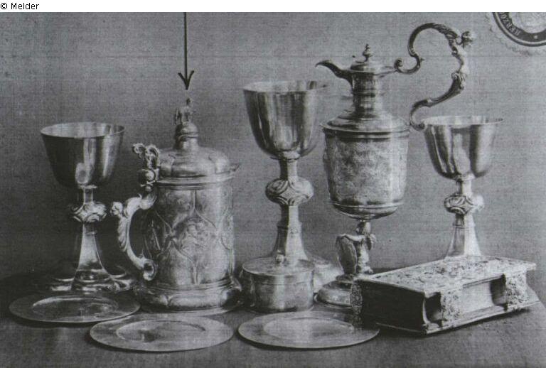 Search Request | Object report Wafer boxes for the holy Communion Lost Art-ID233375 Previous Next TitleWafer boxes for the holy Communion Period of time1500/2000Object typeCrafts and other folk artsGroup of reported objectsCrafts and other folk artsMaterial / TechniqueMetal (Silver)Provenance Elisabethenburg in Meiningen (Thüringen), Abbildung vor 1945 , Thüringisches Staatsarchiv Meiningen Read more Read less Published since2001 Contact Wolf von TrothaPositionBevollmächtigterPhone+49 (0) 69 710 35 554E-Mailoffice@trotha.de