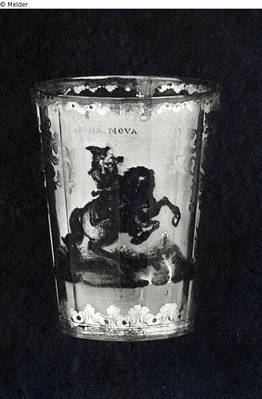 Glass ; Metal (Gold leaf) / stained ; gilded ; Zwischengold technique