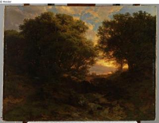 Found-Object Report Evening forest landscape Artist / Creator Calame, Alexandre Object type Painting Material / TechniqueOil ; Canvas / paintedLost Art-ID478444