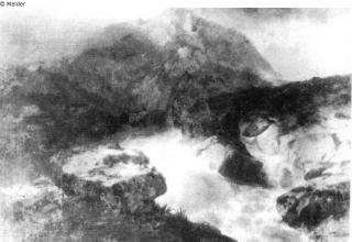 Found-Object Report Path to a ruined castle on the river Artist / Creator Calame, Alexandre Object type Drawing Material / TechniqueInk ; Opaque colour ; Paper / drawn (pen-and-ink drawing)...Lost Art-ID579249