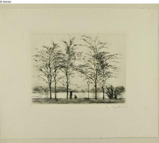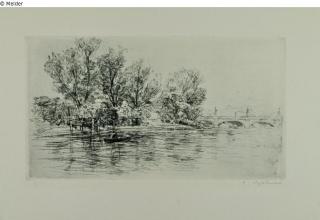 Found-Object Report River bank with trees and road bridge (in the background) Artist / Creator Epstein, Clara Object type Print Material / TechniquePaper (Handmade) / printed (etching)Lost Art-ID319014